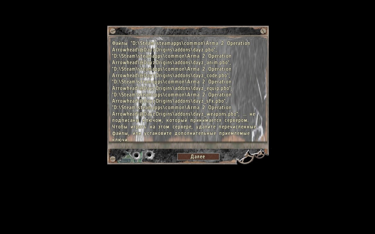 ★★★★★★★★★★★★★★★★★★★★★★★★★★★★★★★★★Unzip the folder and move it, DayzOrigins, with full replacement in your directory - «C: \ Program Files (x86) \ Steam \ SteamApps \ Common \ Arma 2 Operation Arrowhead